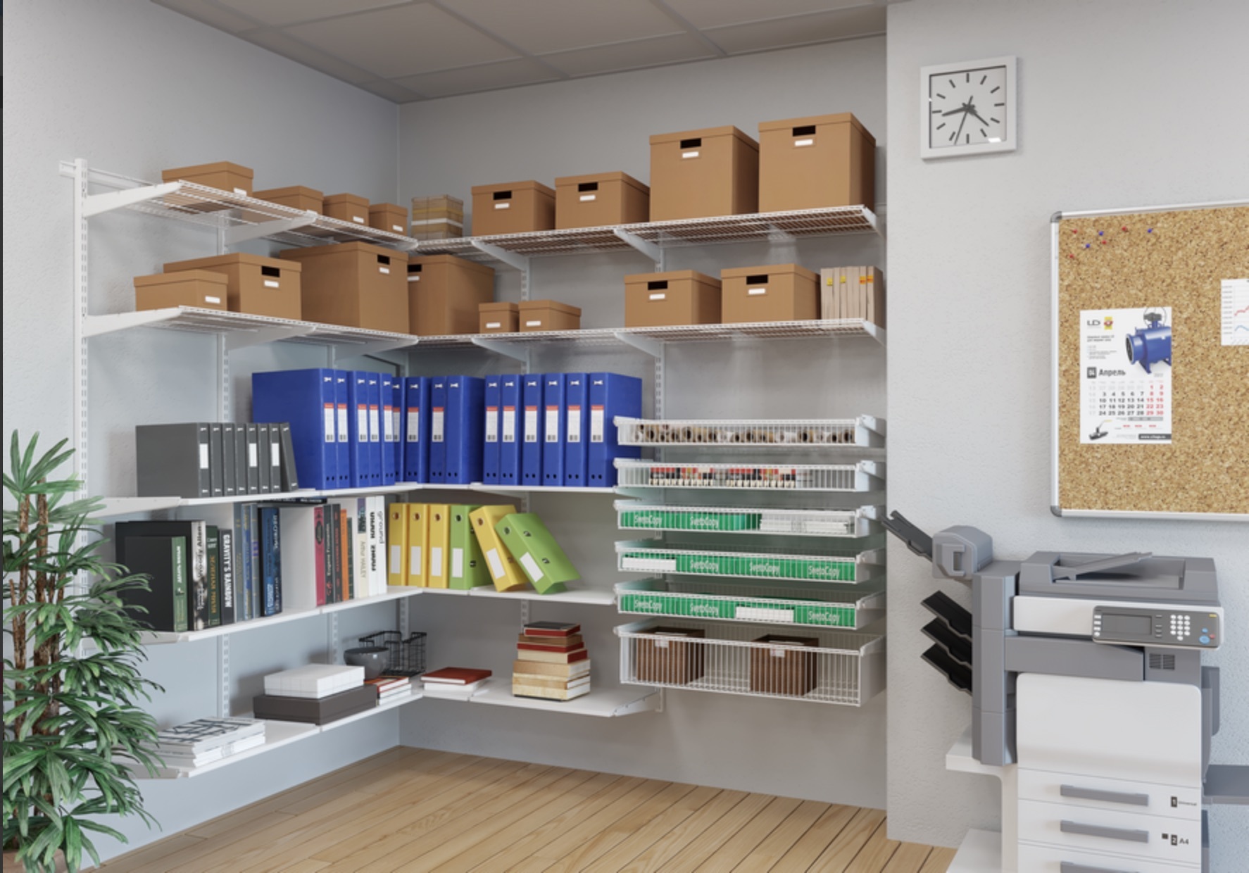 В комплект входят несущие рельсы и навесные направляющие, полки, штанги, аксессуары, крепежные элементы. Можно докупить множество дополнительных компонентов для гардеробной системы.