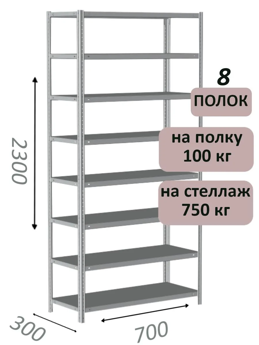 Чтобы уточнить цену и заказать доставку Стеллаж металлический полочный МС 2300х700х300, 8 полок, 100 кг на полку, светло-серый в , звоните по телефону или закажите обратный звонок.