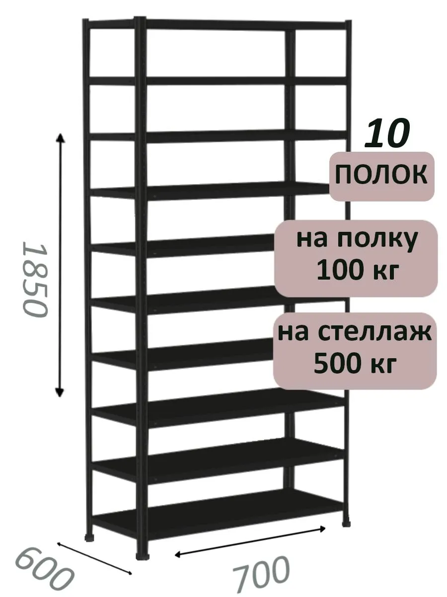 Стеллаж MS Standart 185х70х60, 10 полок, чёрный