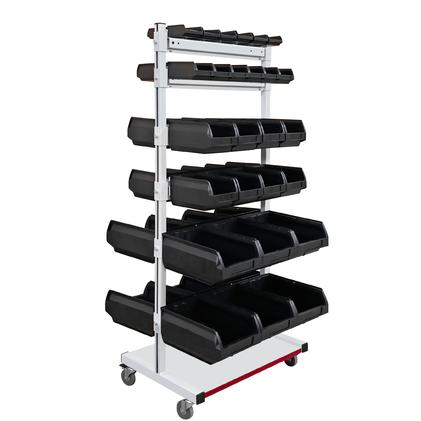 Стойка мобильная для лотков используется для хранения и перемещения комплектующих в рабочем пространстве. Шесть двусторонних планок для лотков регулируемых по высоте для подбора необходимого расстояния между ними.