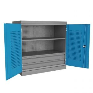 Антресоли изготовлена из листовой стали и обеспечивает надежное запирание дверей ригельной системой. Шкаф данной модели может комплектоваться либо полками Technic(1) и ящиками Technic(1) – по всей ширине шкафа, при этом максимальное количество полок и ящиков по высоте - 12 штук. При установке перегородки, шкаф делится на две части и может комплектоваться полками Technic(2) и ящиками Technic(2), при этом максимальное количество полок и ящиков по высоте - 12 штук в два ряда.