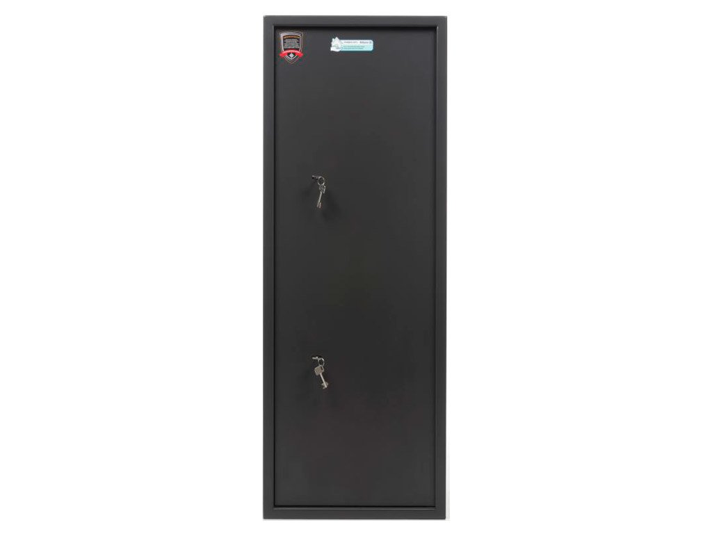 Толщина металла корпуса и двери – 3 мм оборудованы патронным отделением, запирающимся на ключ, полками и ложементами для ружей.