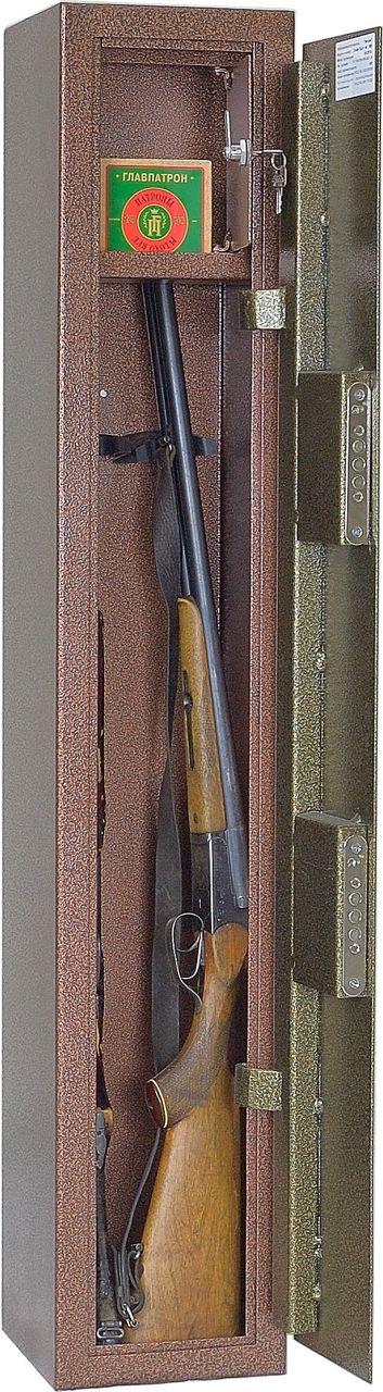 Сейф односекционный, на 2 ствола оснащен отделением под патроны. Ложементы — пластик. Максимальная высота устанавливаемого оружия — 1200 мм. Два замка ЗАО «Про-Сам» г. Рязань или аналогичные замки другого производителя.