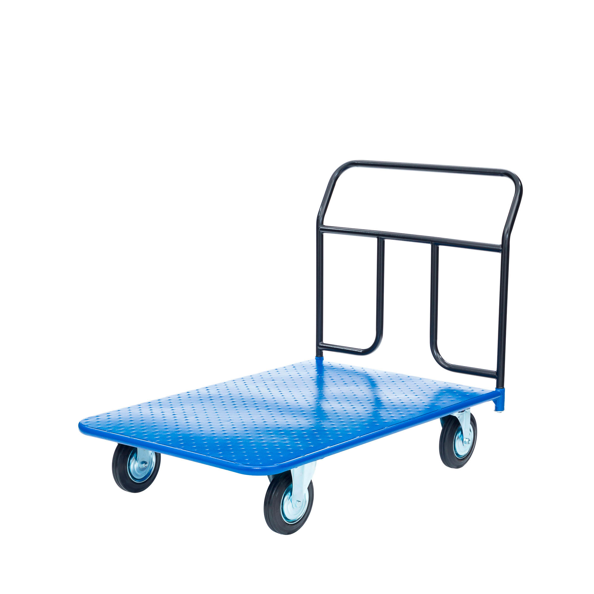 Платформенная 4-х колесная тележка КП-600 (800х1400) используется для перемещения различных грузов в складских помещениях. Ручка крепится к платформе болтами, для компактного хранения можно снять, высота ручки 750мм. Платформа имеет уникальную рельефную, полимерную, противоскользящую поверхность. Цвет синий, шагрень. Для легкого перемещения тележка КП-600 комплектуется 2 поворотными и 2 неповоротными колесами, изготовленными из высококачественной литой резины.