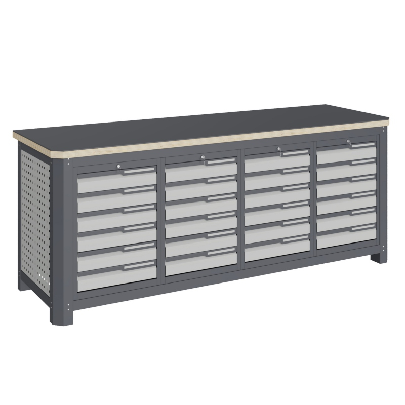 Модуль верстака выполнен сварными. Ящики в модулях устанавливаются на шариковых телескопических направляющих полного выдвижения.