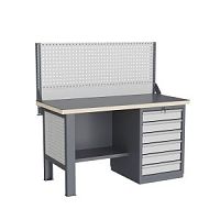 Тумбы и опоры верстаков выполнены из профилированной холоднокатаной стали и имеют сварную конструкцию. Возможна установка любых сочетаний тумб с различным количеством выдвижных ящиков, а также с дверцей и полками. Между тумбами и опорами возможна установка полки-стенки. На каждой ручке ящика и двери закреплен специальный алюминиевый профиль с отделением для установки маркировки. На тумбы с выдвижными ящиками установлена система антиопрокидывания, которая ограничивает выдвижение остальных ящиков тумбы, если один из ящиков выдвинут. Ящики снабжены специальными усиленными шариковыми направляющими. Тумбы снабжены центральной системой запирания.